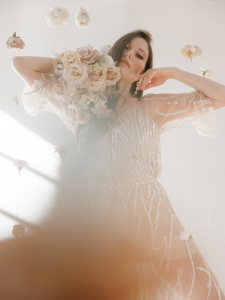 Between Floating Flowers. as She Floated Among The Blooms, She Felt A Sense Of Freedom And Weightlessness, As If Anything Was Possible.