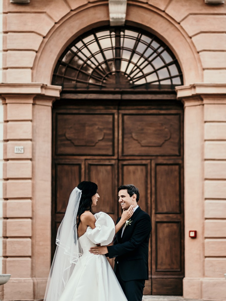 We Are In Bologna, Our Journey Begins Here, In The House Where Andrea Grew Up, A Welcoming Environment Where You Can Breathe The History Of His Family. Andrea Prepares With His Groomsmen, In The The Air There’s A Mix Of Lightness And Emotion. Like Andrea, Gioia Has Decided To Get Ready In The Family Home, So We Drive To Ferrara. In The Bride's House, As Often Happens, There’s A Mood Of Expectation And Trepidation; We Immediately Understand That During The First Moments Of Preparation Gioia Prefers Silence, So We Decide To Leave Her Alone And Dedicate Ourselves To The Photos Of Her Wonderful Pronovias Dress. The Tension Begins To Melt, Also Thanks To The Arrival Of Gioia's Witnesses And Loved Ones. The Bride Is Finally Ready, It's Time To Go To The Church In Voghiera For The Ceremony; The Parish Of The Nativity Of The Virgin Mary Is As Beautiful As One Would Expect From An Italian Church And Enchants Us With Its Baroque Taste. After The Ceremony We All Move To The Location To Start The Celebrations; An Enchanting Historic Residence From The Early 1700s, Villa Massari Mazzoni, Which The Wedding Planner Marilena Zambelli Has Made Even More Magical. Everything Is Ready To Welcome The Arrival Of The Couple With A Romantic Surprise That Andrea Wanted For Gioia, An Elegant Violin Orchestra. The Atmosphere Is Truly Enchanted And The Evening Passes Slowly Accompanied By The Swing / Jazz Soundtrack Of Miss Cecily And Her Hot Strings. The Elegant Imperial Table Illuminated By A Cascade Of Lights Is Reserved For The Couple's Numerous Friends. When The Evening Falls, Villa Massari Mazzoni Reveals Itself In All Its Beauty Thanks To The Lights Of Kaleydos That Illuminate The Park And The Majestic Secular Tree, The Perfect Background For Cutting The Cake That Preludio Catering Has Created For The Newlyweds. Before Saying Goodbye, The Villa Has One Last Surprise In Store For Us, Its Theater; A Special Day Can Only End With Unforgettable Celebrations!