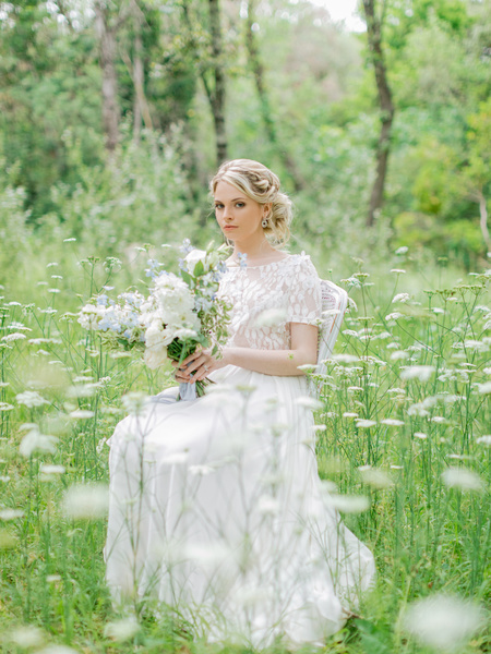 It Is In Provence, In The Middle Of Vineyards And Poppies Fields ,that Hides Chateau D'astros, A Charming 19th Century Castle Inspired By The Italian Architecture Of Tuscany. To Create A Sophisticated Atmosphere, Dusty Blue, White And Greenery For The Floral Compositions As Well As For The Decor Elements And Tableware To Enhance The Intimate Wedding Table. To Bring Modernity To This Historical Venue, The Bride Wears A Fine Lace Crop Top And A Flowing Skirt With A Long Train. For Poetic Flatlays, Handmade Stationery On Cotton Paper, As Well As The Bride's Shoes And All These Accessories Such As Perfume, Wedding Rings Or Vintage Jewelry. The Photographers Played With Lines And Natural Light Brought By The Interior And Exterior Architecture Of The Venue. From The Small Private Chapel, To The Spontaneous Flowers Adorning The Gardens, As Well As In The Castle With Its Frescoes And Its Magnificent Flowered Staircases, The Team Brings You Through A Poetic Journey Where Past Meets Present To Create An Exceptional Wedding Inspiration In The Heart Of Provence.