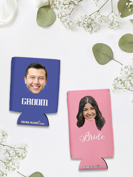 “that’s My Buddy” Drink Insulator (or Mask) Is A Fun And Novel Bridal Party Gift Or Bachelorette/bachelor Party Favor! Upload The Face And Choose From Many Whimsical Backgrounds The Company Will Put The Face Front And Center On The Sleeve! Price: $12 Each Or 3+ $8 Each