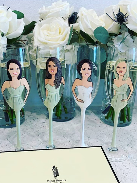 You Will Definitely Want To Say - Thanks For Being Together, Thank You For Your Support And Care. Personalized Gift Will Say It All. Customized Champagne And Wine Glasses Can Be Perfect “will You Be My Bridesmaid?” Gift. You Can Use Them In Your Bridal Party And Reception As Eye Catching Decoration.i’m Artist And I’m Painting Illustrations On Glasses. Each Glass Is Unique Painting By Likeness, I Will Use Your Photos To Make A Very Special Gift For Each Bridesmaid , Maid Of Honor And Mother. I Will Make Pretty Illustrations Including Customized Dresses And Bouquets. And Yes, You Can Drink Form These Glasses And Wash Them.if You Are Interested – Please Contact Me And I Will Make These Fully Customized Gifts For You.