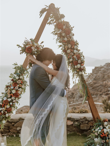 A Beautiful Ceremony In Villa On The Rocks with The Most Breathtaking Panoramic View Of The Aegean Sea. Incredible Decoration Combined With This View And Made The Best Scenery For Their Wedding.
