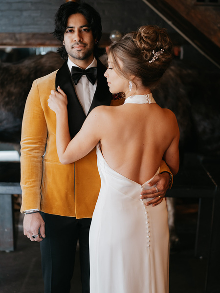 Step Into The Enchanting World Of Maison Tela With Our Latest Editorial Shoot—an Exquisite Blend Of Glamour, Daring Fashion, And Sheer Dash.immerse Yourself In A Captivating Tapestry Of Eclectic Décor That Sets The Stage For A Truly Unforgettable Experience. This Meticulously Styled Editorial Is A Testament To Creativity, Seamlessly Fusing Vintage Charm With Contemporary Chic, All Under Theenchanting Presence Of Swaying Palm Trees. Montreal's Finest Industry Talents Collaborated To Weave A Spellbinding Narrative, Creating Pure Magic Within Thewalls Of Maison Tela. the Bride Takes Center Stage, Adorned In A Sculptural Ruffle Wedding Gown By The Renowned Jenny Yoo, Paired Effortlessly With Graceful Loop Earrings From The Brilliant Mind Of Designer Catherine Deane. A Seamless Transition Into The Second Outfit Unveils A Bride Confidently Rocking An Adventurous Watters Wedding Gown, Complemented By Charming Earrings From Thesame Visionary, Catherine Deane. The Groom, Not To Be Outdone, Exudes Charisma In A Lilac Suit Harmoniously Paired With A Bold Pink Tie By The Esteemed Blandin Delloye, Creating A Distinct And Eye-catching Ensemble That Captures The Essence Of Modern Elegance. this Editorial Feature Is A Visual Symphony, Tailor-made For Couples In Search Of Modern, Fashion-forward Inspiration For Their Wedding Day. Discover The Allure Of Maison Tela—an Editorial That Transcends The Ordinary And Beckons You To Embrace The Extraordinary As You Embark On Your Journey To Forever.
