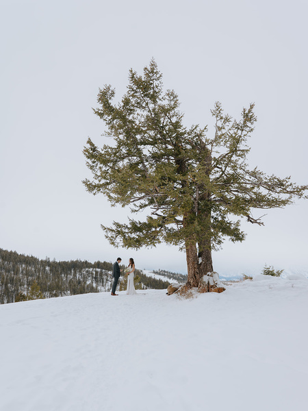 Kelsey & Michael Eloped At The Wedding Tree For A Wintery, Snowy Ceremony. they Drove Up From Denver With Their Two Dogs For An Epic Winter Elopement And Ski Trip. first, We Met At The Wedding Tree For Their Vows And Family Photos. afterwards, We Headed Into The Park For A Celebration With Some Champagne And Cake! It Was A Quick, Vegas Style Elopement That Ended At The Million Dollar Cowboy Bar For A Few Drinks To Kick Off The Evening. there Is Just Something So Special About Taking A Weekend Road Trip With Your Pets And Getting Married In Nature. For Kelsey And Michael, It Was A Perfect Way To Kick Off A Ski Trip And Enjoy One Of Their Biggest Passions By Saying I Do Right Before Hitting The Slopes!