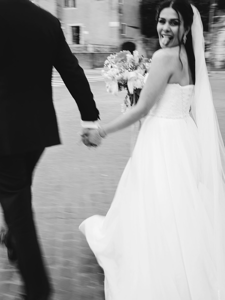 A Joyful Bride Caught In A Candid Moment During A Norwegian Wedding In Rome! Love The Playful Vibe As They Stroll Through The Charming Streets, Hand In Hand.rome Wedding Photographer