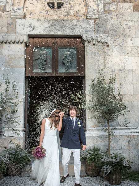 A Romantic Wedding Between The Olives Trees And The Sea In The Beautiful Tuscany. The Ceremony Took Place In An Ancient Church In The Town Of Pietrasanta, Set Up By Amanda Casassa With Typical Tuscan Olive Treesfrancesca's Dress, Created By A Seamless Designed For Her, Was Simple And Very Elegant. Loose Hair Was Perfect For A Beach Wedding That Taste Of Freedom And Freshness.the Bouquet, Created By Fioreria Dei Parchi, Gave A Note Of Delicate Color.the Reception Took Place On A Wonderful Beach In Forte Dei Marmi Where The Bride And Groom And Their Guests Drank Prosecco At Sunset And Then Danced Until Late At Night.the Wedding Planner Simona Chiavaccini Made Sure That Everything Was Perfect By Creating An Elegant But Informal Atmosphere.veronica Onofri's Photographs Are Spontaneous And Full Of Emotions. The Photographer Wanted To Capture The Beauty Of The Place And The Happiness Of The Spouses And Their Guests, Not Leaving Out A Single Detail