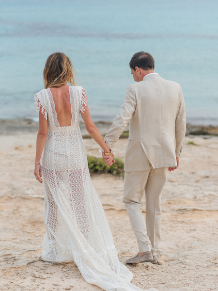 Silvia & Daniele Wanted To Celebrate Their Wedding In The Beautiful And Wild Island Of Formentera. A Day That Has Turned Into A Big Party With The Closest Friends. A Boho Setting Made Of Dried Pakms, Pampas Grass And Touches Of Gold, A Color Dear To The Bride