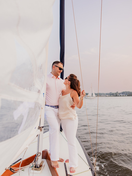 Ahoy, Future Brides And Grooms, Fellow Photographers, And Anyone Else Who Stumbled Upon My blog! I’m So Excited To Share With You Not Only This Gorgeous Sailboat Engagement Session, But Also Philip And Nicole's Engagement Story!the Future Mr. And Mrs. Reynold's Story Began In The Digital Realm Of The Hinge Dating App. Followed By A Phone Call, A Facetime Chat, And A Magical Third Date - Their Connection Blossomed Into Something Extraordinary. philip's Proposal Was A Night Nicole Would Never Forget. Their Apartment Was Transformed With Rose Petals, Candles, And Frank Sinatra Hits. With The Manhattan Skyline As A Backdrop, Philip Asked Nicole To Be His Wife. sailing Is A Shared Passion For Philp And Nicole. Philip grew Up Sailing Competitively Every Summer At The Jersey Shore And Eventually Joined The Sailing Team At The Us Naval Academy Becoming A World Class Sailor Today. And Nicole Took Sailing Lessons Out Of The Manhattan Yacht Club In 2019 And Is Still A Novice. So, As You Can See, Having Their Engagement Session On A Sailboat Was Quite Symbolic.their Engagement Session Brought Excitement And Challenges. The Excitement? A Stunning Sunset With Just The Right Amount Of Breeze. The Challenge? A Haze From The Canadian Wildfires. But The Photos Turned Out Beautiful For This Perfect Sailboat Engagement Session. as They Look Forward To Their Wedding, Philip And Nicole Are Most Excited About Celebrating With Loved Ones. They Can't Wait To Dance The Night Away And Create Memories. this Shoot Was A Reminder That Love Can Set Sail In The Most Unexpected Ways, Like Dating Apps.