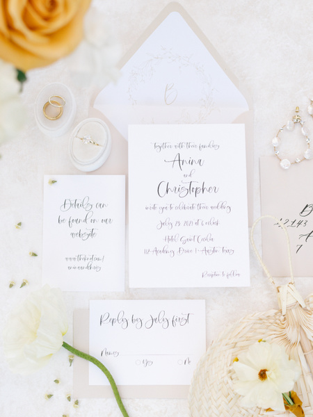 When Designing This Shoot, We Wanted To Intentionally Juxtapose Black & White With Shades Of Warm Colors. When It Came To Stationary, A Classic Neutral Suite With A Custom Monogram Envelope Liner Fit Perfectly.