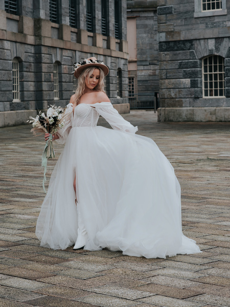 An All Female Crew Of Suppliers Worked Together On This Fantastic Elopement In The Moody Grounds Of The Royal William Yard, Devon, Uk. Monochrome Bohemia Was The Theme For The Day And All Dried Floral Accessories From The V.v Atelier Matched The Florals From Yasmin Downing Floral Designa Bridal Fedora And Cowboy Boots Set Off This Stunning Boho Dress From Frilly Frocks Bridal