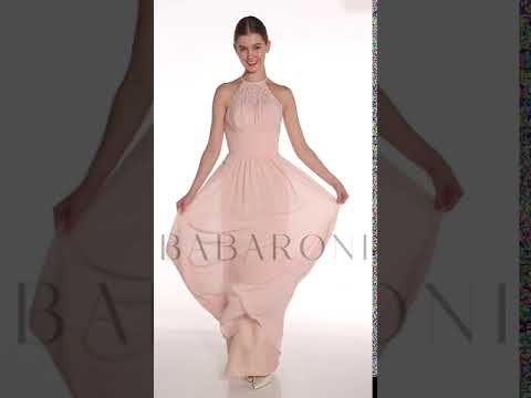 BABARONI BLANCHE is a gorgeous full-length chiffon dress that kisses the earth you walk on. A halter neckline and a special back design with buttons add a sophisticated finish, which also shows your charming body. Casual elegance and a free-form design come together in this stunning dress.
