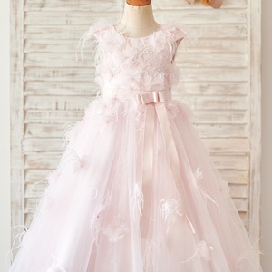 Or you can play it up a bit and opt for a dress that will put your flower girl in the spotlight (think dresses with 3D flowers and butterflies, dresses with feathers or sequins).