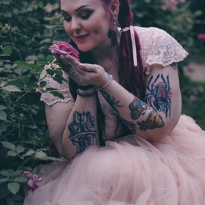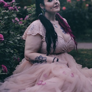 She wore the vintage-inspired Fairy Blush pink wrap lace bohemian wedding dress, pared-down with iridescent Dr marten platform boots and a bouquet of dried flowers she made herself.Read the Blush Blog