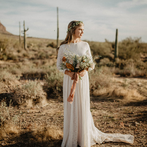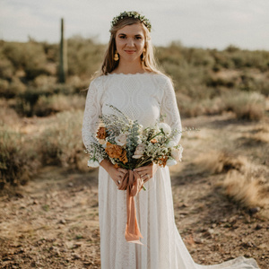 Meet Mr. and Mrs. LaRavia, who tied the knot in true boho fashion, in the middle of a beautiful desert surrounded by mountains and cactus. The unique wedding was captured beautifully by CHARITY HARDAWAY PHOTOGRAPHY. It was an intimate wedding during covid, but a magical experience nonetheless. The bride looked stunning in her vintage lace BLUSH fashion open-back dress with an elegant trail with natural hair and sandals - showing the beauty of true Bohemian simplicity. The color scheme consisted of natural desert colors, a palette of blush pink combined with mustard, orange, and olive green. Thank you to the talented photographer for bringing us, for a moment, into this magical world. And a special thank you to the LaRavias for letting us be a part of your Big day. Many congrats to the lovely couple!