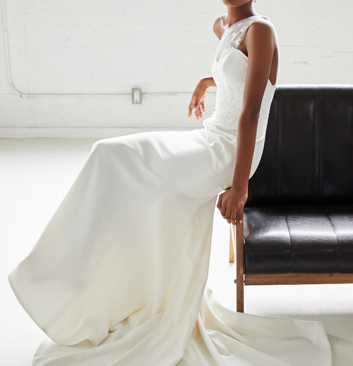 Once a year every fall, our new Astrid & Mercedes gowns splash onto the scene, and despite all the crazy, 2020 is no different! In fact, we’d posit that our new 2021 A&M Confetti collection is something extra special, proving the old adage that beauty flourishes in adversity. Plus, after searching high and low, Lea-Ann finally found the environmentally friendly fabrics she’d been looking for in the form of our eco faille and eco mikado. Both textiles are spun from 100%-recycled plastic bottles, and, of course, every single Astrid & Mercedes gown is cut and sewn by hand in our Toronto atelier. So, selecting one of these gowns will help you reduce your carbon footprint in a big way!