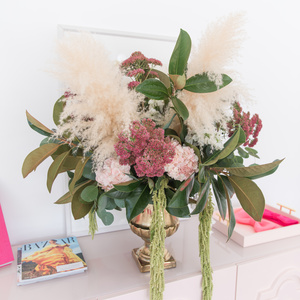 As a floral artist, I live for helping my brides create their perfect wedding. Creativity is the root of my passion and the main inspiration behind starting my own business. My least favorite thing on the other hand is feeling trapped into generic, cookie-cutter designs. This is why I love it when my clients allow me the freedom to think outside of the box and be more in tune with turning their personal stories into elements I include in their arrangements. I get to play around with beautiful blooms, feathers, and greenery every day, while also helping my clients concentrate on the actual products they’re receiving and making sure they’re worth their time and effort.