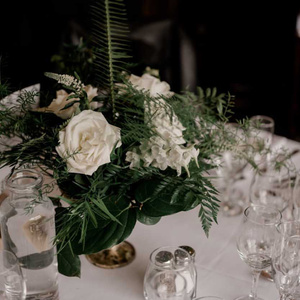 Soft spring wedding with lots of fern and white flowers. Peonies in bridal bouquet and soft and tender ranunculus in bridesmaid bouquets created a tender spring wedding look.