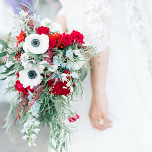 Well, we are very patriotic and very much love our country but we also love the bright colors. It is not often we get to use such bold colors in wedding work. When our bride, Sarah, was needing a color palette redesign we were ecstatic to offer the red, white, and bloom palette. She surprised her now-husband with the flowers and he loved them so much he had them preserved for her after their intimate wedding.