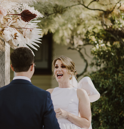 Celebrant Jamie Eastgate of Brisbane City Celebrants guided the couple through their ceremony with sensitivity and care, ensuring their love story was the focus, by delivering the ceremony while standing off to the side, and encouraging the couple to focus on each other as they listened with open hearts to the special words he shared.