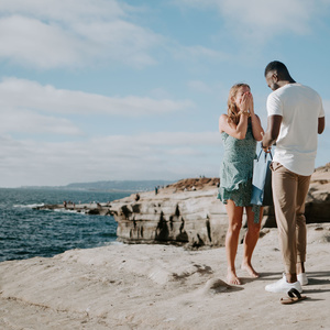 Little back story on this sweet proposal // Gabby came out to San Diego for the weekend for a bachelorette party. Well little did she know that Ade was flying out to San Diego right behind her to surprise her on the last night. All her friends were in on it and it was epic! The look on Gabby’s face when she turned around and found Ade behind her was priceless!