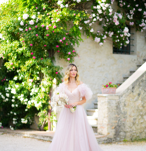 A fabulous destination weddding in Umbria.Umbria is the green paradise in the centre of Italy. It is a region full of greenery, made of bushes and secret roads that lead you to enchanting places. In this region, there are a lot of old abbeys, castles and churches, like the venue that Ruth and Garry have chosen for their wedding day. They are Scottish and live in Dubay. They want to live in authentic Italy, made of delicious food, excellent wine, and laughter and joy.They chose the venue of San Pietro Sopra le Acque to have all of these. In this historical and evocative atmosphere, Ruth and Garry choose to get married here.They wanted to have the getting ready into the rooms of this gorgeous venue. Ruth looks so beautiful with her dress of Susanna Rachel Bridal, and thanks also to the make-up artist Hair Make up Rome.They celebrated a symbolic ceremony in the garden full of roses in front of the old arch.Stefano Mordivoglia was the celebrant of their symbolic wedding. Every word was so emotional. The day concluded with a fun party where everyone danced to the band’s music Senna.