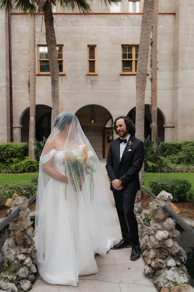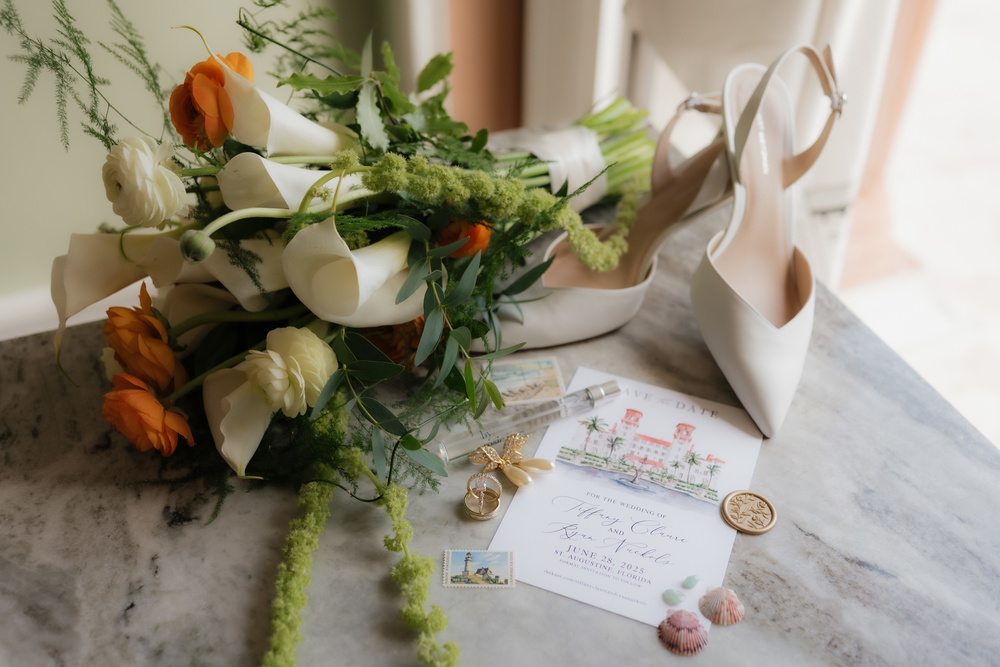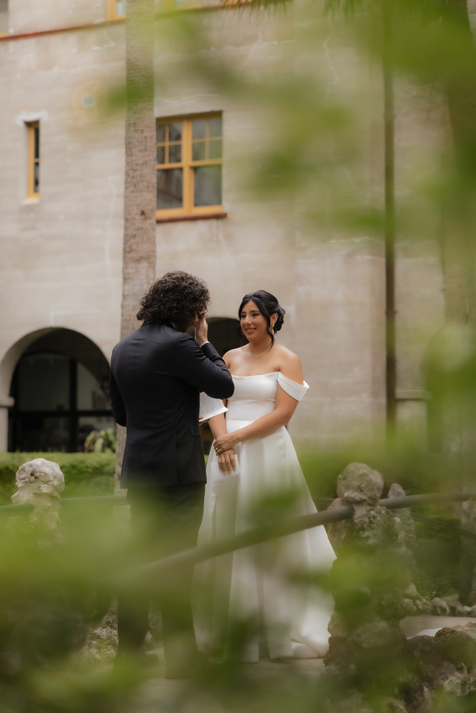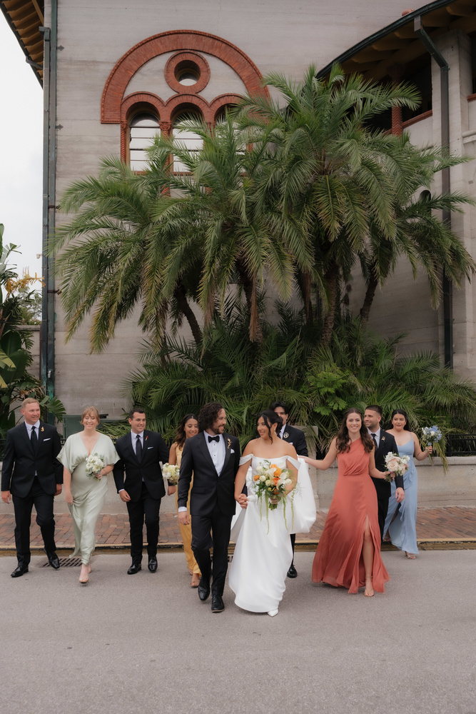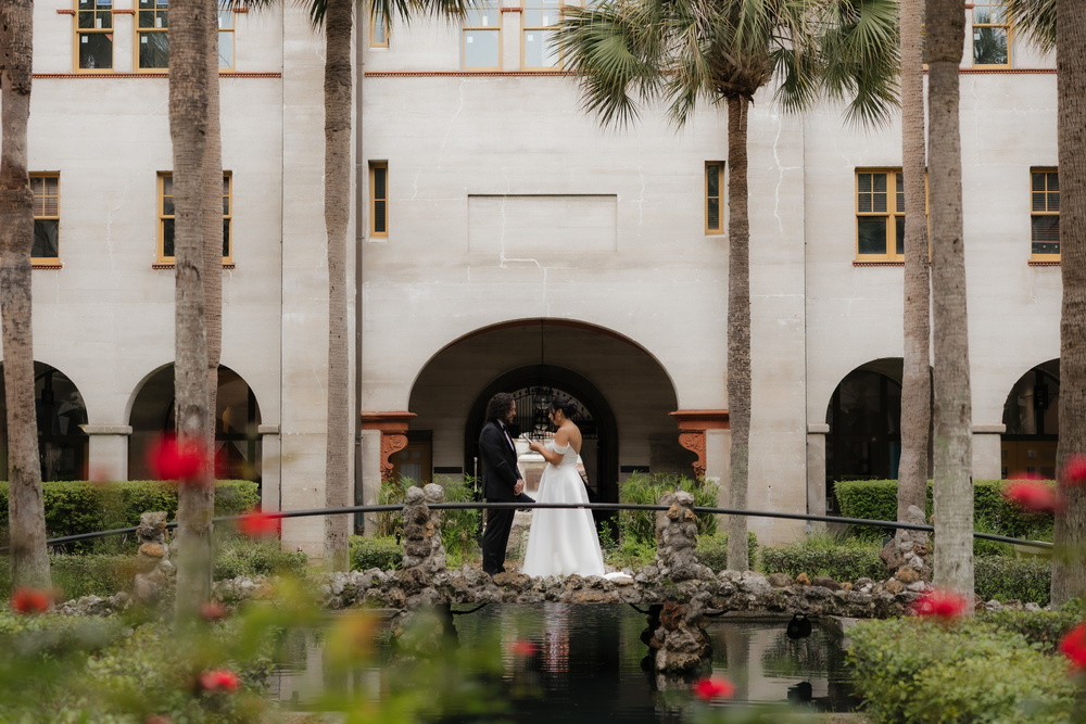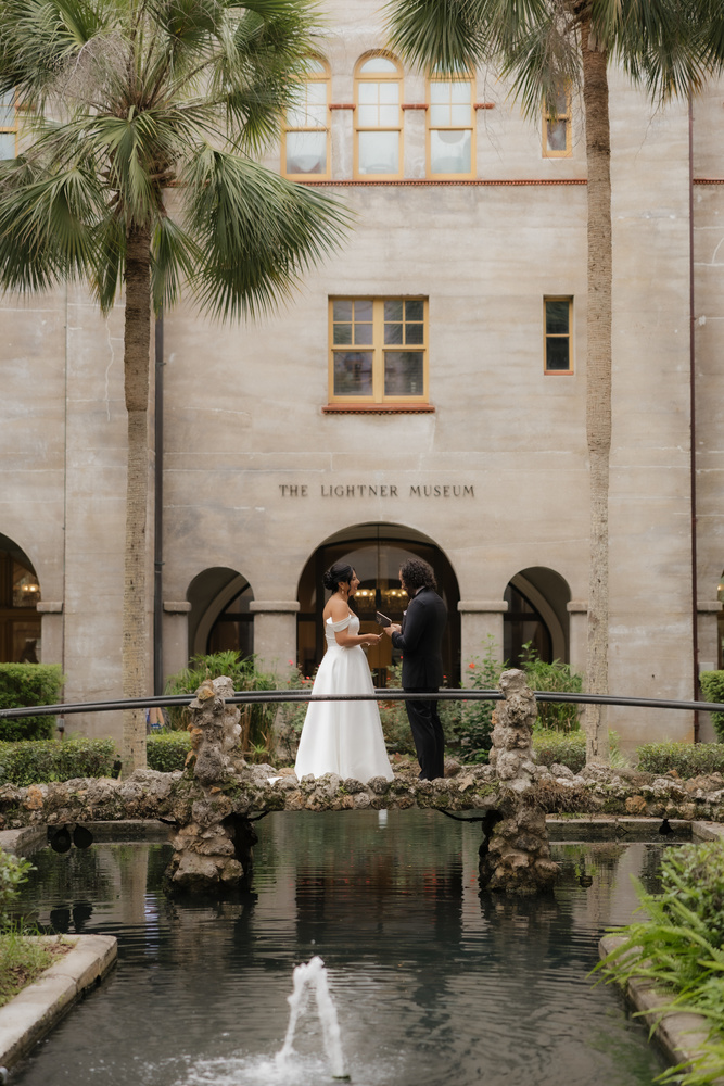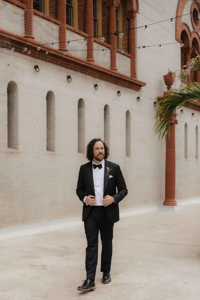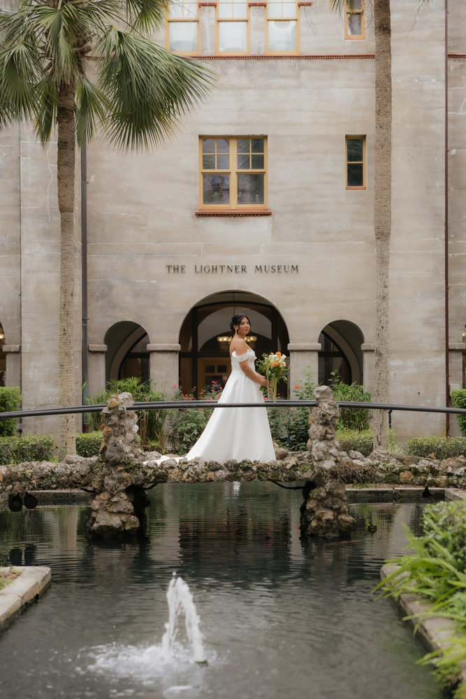 The Nuckols wedding at The Lightner Museum was the definition of timeless luxury. The day was filled with elegant design, rich music, and personal touches that elevated the entire day. Set inside one of St. Augustine’s most iconic historic venues, every moment felt grand yet intimate, modern yet rooted in history. The day began with a romantic first look in the courtyard, surrounded by arched walkways and lush greenery that created the perfect setting for a quiet moment between the couple. The indoor ceremony followed, with soft lighting, stunning architecture, and an energy that felt reverent and warm. Throughout the evening, luxury met celebration. A live saxophone player set the tone during the reception, adding a sultry, elevated vibe to the space. Later in the night, guests were surprised with late-night snacks, crispy fries and artisan gelato, a fun, elevated twist on comfort food that kept the energy going strong. They had some of the most stunning details, postcards from their travels as their guestbook, thrifted broaches for the mens boutonnières, the bride even thrifted long sleeve shirts and embroidered her bridesmaids names onto them, and she even embroidered the inside of the grooms suit jacket with a sweet note. We took full advantage of the museum’s stunning interior and exterior for couples portraits. The vibe was classic, romantic, and refined. Every image felt cinematic, framed by warm light and timeless backdrops. The night ended with a private last dance, sparkler exit, and the couple walking off to their hotel. From start to finish, the Nuckols wedding was a seamless blend of style and heart, proof that the best weddings are equal parts beautiful and deeply personal.