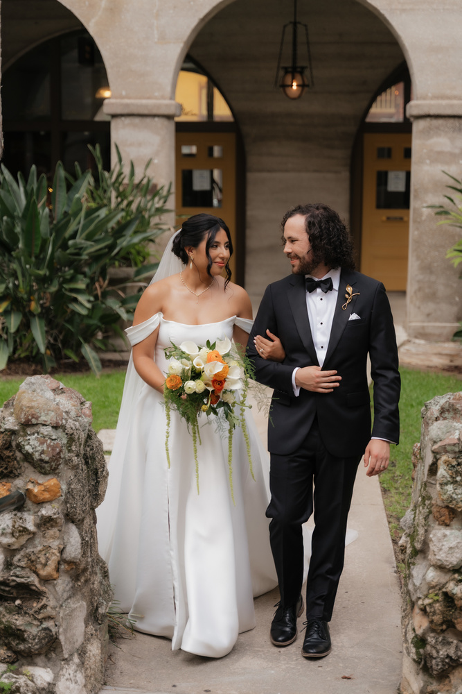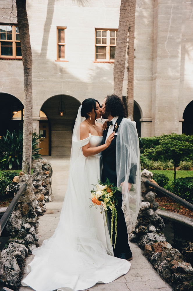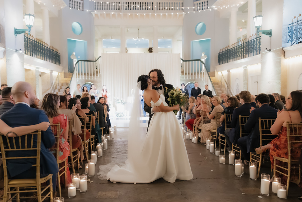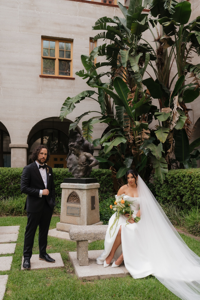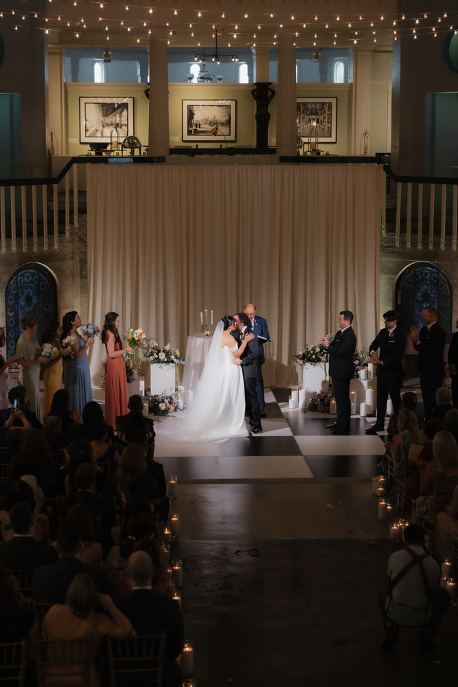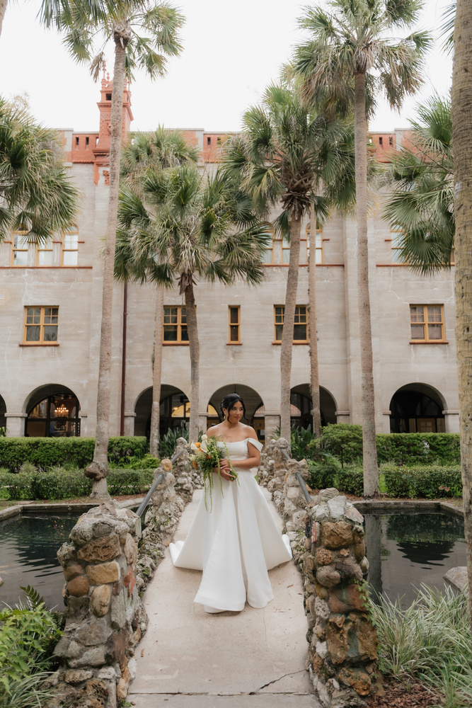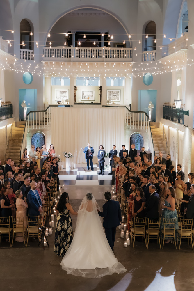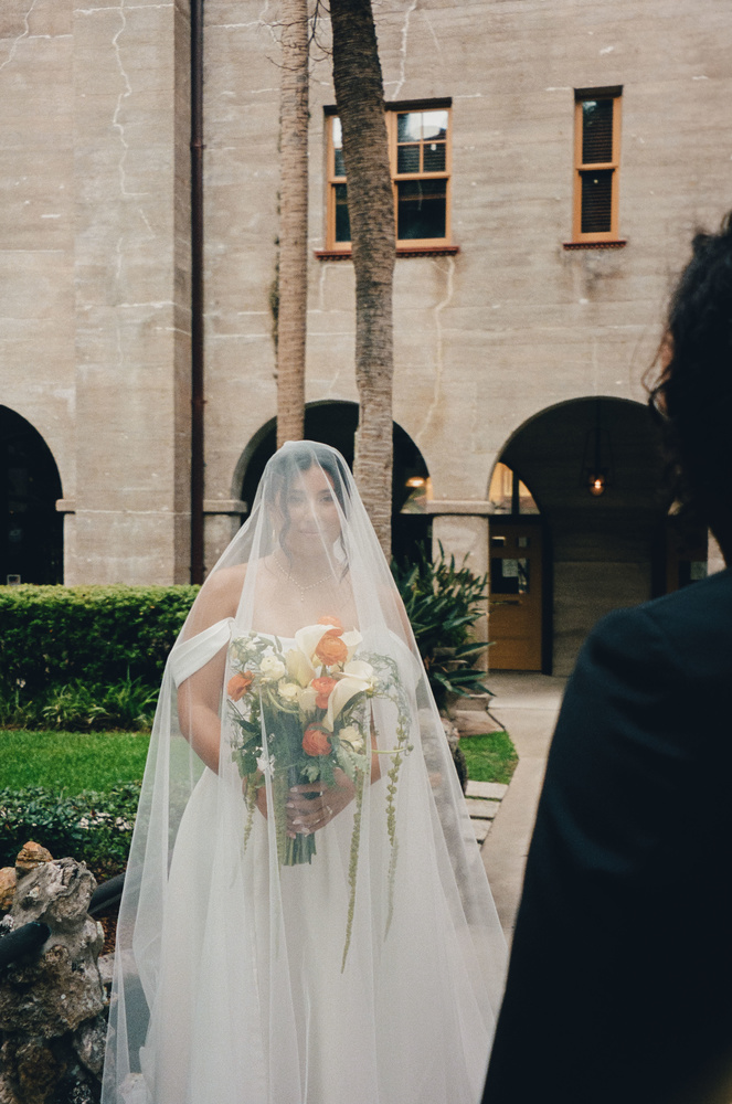The Nuckols wedding at The Lightner Museum was the definition of timeless luxury. The day was filled with elegant design, rich music, and personal touches that elevated the entire day. Set inside one of St. Augustine’s most iconic historic venues, every moment felt grand yet intimate, modern yet rooted in history. The day began with a romantic first look in the courtyard, surrounded by arched walkways and lush greenery that created the perfect setting for a quiet moment between the couple. The indoor ceremony followed, with soft lighting, stunning architecture, and an energy that felt reverent and warm. Throughout the evening, luxury met celebration. A live saxophone player set the tone during the reception, adding a sultry, elevated vibe to the space. Later in the night, guests were surprised with late-night snacks, crispy fries and artisan gelato, a fun, elevated twist on comfort food that kept the energy going strong. They had some of the most stunning details, postcards from their travels as their guestbook, thrifted broaches for the mens boutonnières, the bride even thrifted long sleeve shirts and embroidered her bridesmaids names onto them, and she even embroidered the inside of the grooms suit jacket with a sweet note. We took full advantage of the museum’s stunning interior and exterior for couples portraits. The vibe was classic, romantic, and refined. Every image felt cinematic, framed by warm light and timeless backdrops. The night ended with a private last dance, sparkler exit, and the couple walking off to their hotel. From start to finish, the Nuckols wedding was a seamless blend of style and heart, proof that the best weddings are equal parts beautiful and deeply personal.
