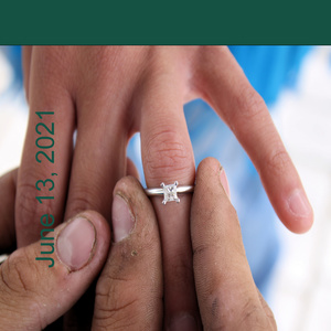 12 inch by 12 inch 20 page Lay Flat Guestbook using your engagement pictures. Base price with hard cover is $62.00. You will need 15 Horizontal pictures and 9 Vertical pictures. Leather cover and shipping will be an extra cost.