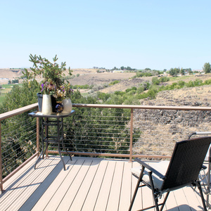 The property sits high on a hill it has million dollar views and even a secret waterfall on the neighbors property. The front deck is where the wedding was held.
