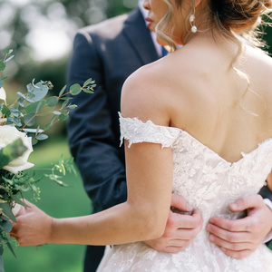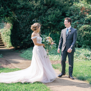 The Secret Garden at the manor is perfect for an intimate first look for the bride and groom. C + D were beautifully backlit in just the right way while taking their portraits before their ceremony for their Raspberry Plain Manor wedding.