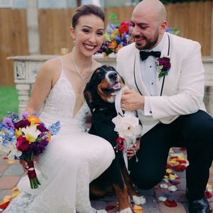 Your dog is your first baby. You take them to daycare, to the park, to get their hair cut, and even look for pet friendly accommodations when you travel. Since pets are part of their fur-ever family, many couples are increasingly choosing to include them in their wedding day. If you’re lucky enough to be able to have your animal as part of your ceremony or reception, there are a few factors to consider before springing for flower pup attire. It’s always best to first think of the comfort of the animal and their level of sociability. Will they be uneasy with a large number of strangers or with loud music? Are they well enough behaved to not lunge at guests or try to steal food?