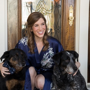 If your pets are social party animals and stay at the reception, plan to have a quiet space separate from the party for your pet to go to eat, drink or lay down for small breaks during the night. Having a crate, their bed or favorite toy can help ease their nerves if they are feeling a bit overwhelmed. When excited, many pets will get thirsty so make sure to let them drink plenty of water so they don’t get dehydrated. And lots of water means lots of potty breaks! If you don’t have a professional handler for the reception, plan to have a family member or friend who the pet is familiar with who can help take them outside and also get them home at the end of the night. You should also make this person aware that they might have to unexpectedly leave the party should your pet become upset or anxious & need to return home.
