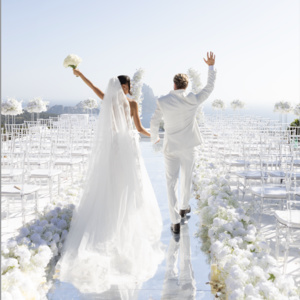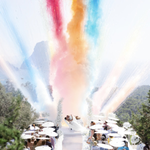 A magical ceremony above the sea – featuring a custom floating platform, a mirror aisle reflecting the Ibiza sky, and an unforgettable rainbow explosion at the kiss. Designed and planned by Alera Weddings, this celebration in front of the mystical Es Vedrà was a breathtaking fusion of elegance, emotion, and artistic detail.
