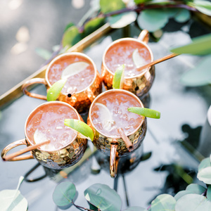 While it was all about subtlety with this shoot, I do think it's important to have some shameless fun with any themed wedding. Light sabers were, of course, a must! We also included Evie the pup sporting a Chewbacca vest for photos. A scroll including the text from the beginning of Star Wars Episode IV: A New Hope as well as a few small copper-tinted figurines rounded out the most overt aspects of the Star Wars theming on this shoot.