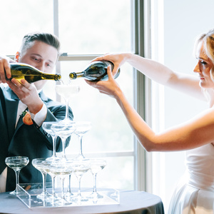 After the tower was poured, the couple and wedding party all grabbed a glass of bubbly and the officiant encouraged guests to join in a toast to Patsy and Zach's marriage! It was a truly unique and memorable experience for the couple and their guests.