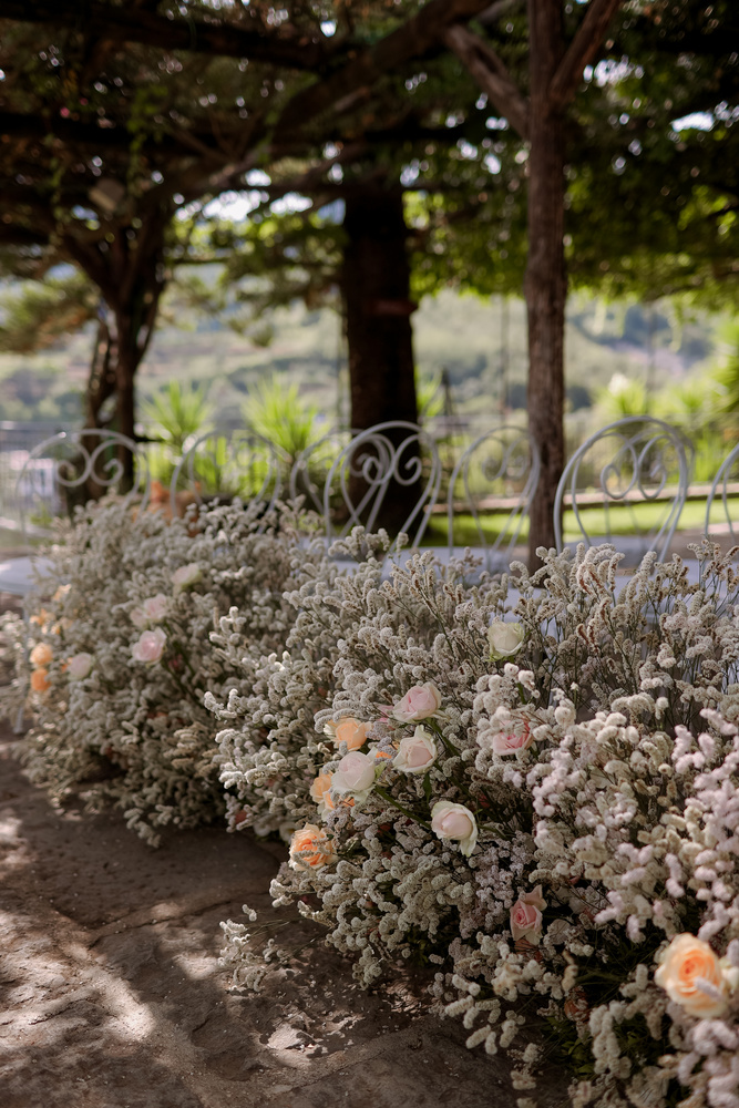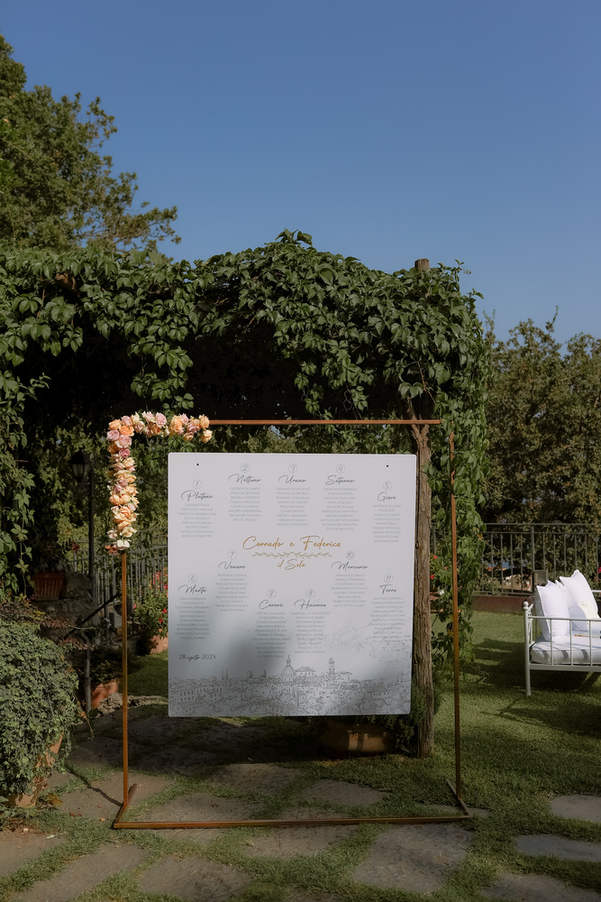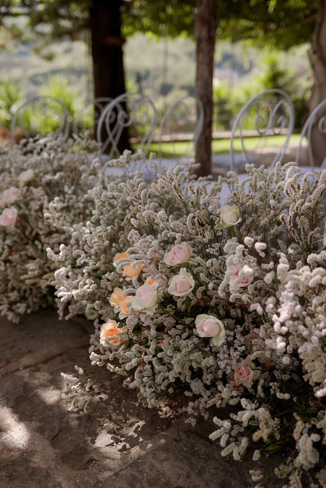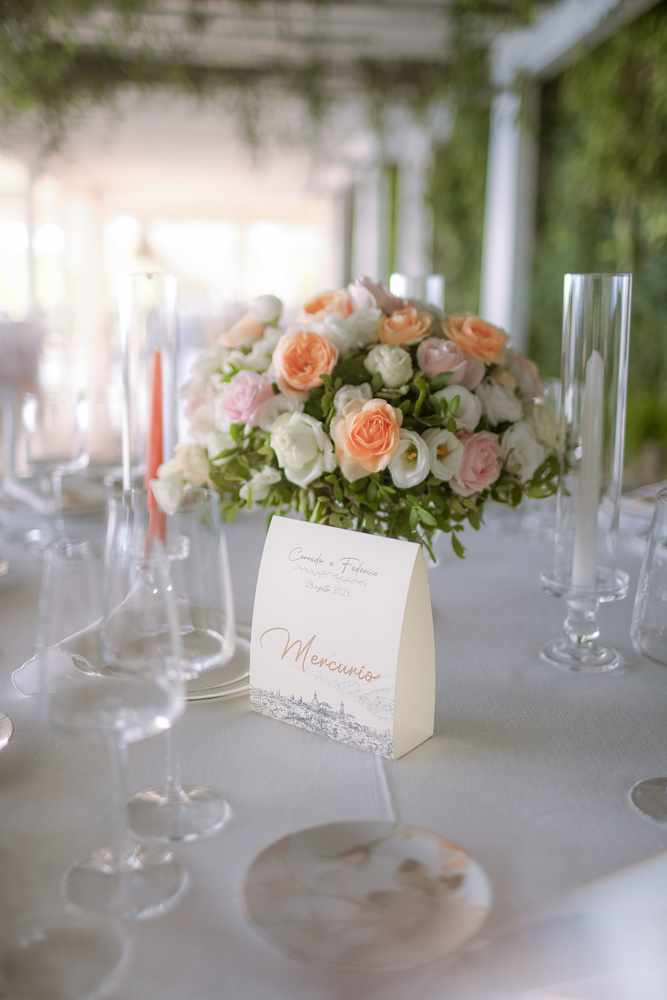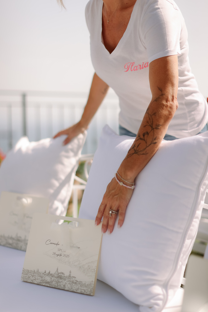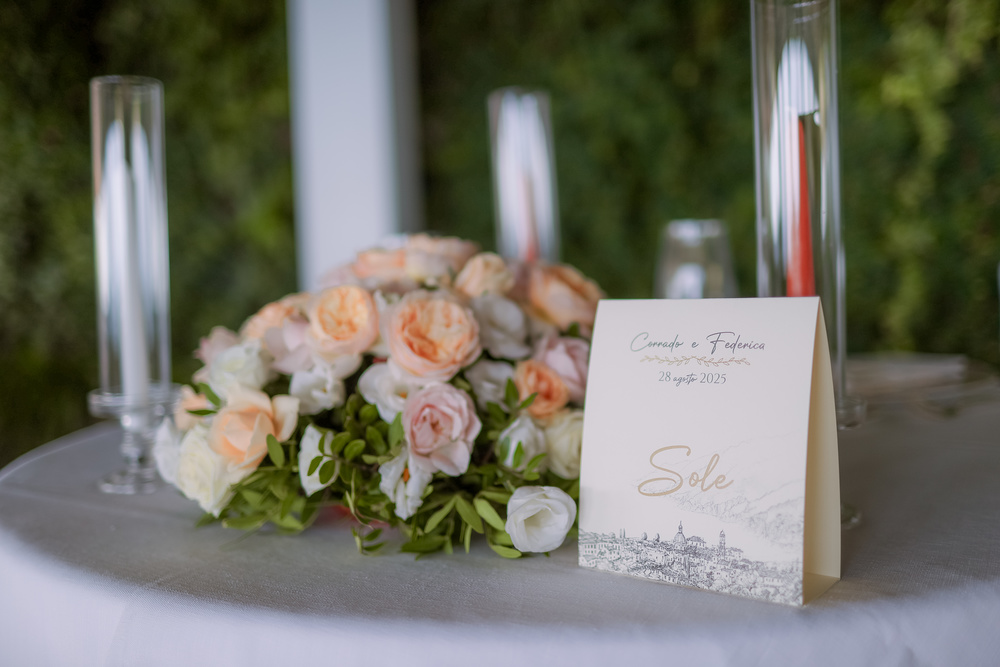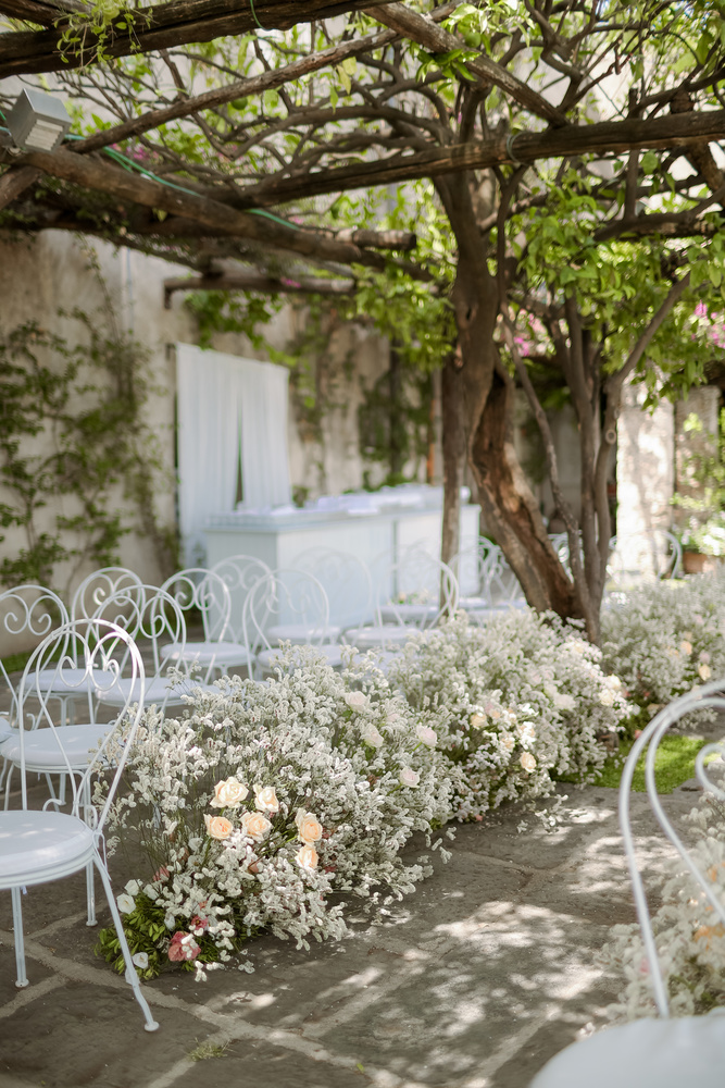 In Vietri sul Mare—where the Mediterranean blue meets the lemon glow and hand-painted tiles—this wedding set out to tell a love story with the same delicacy as its ceramics. A palette of ivory, blush and sea-blue guided the design, from garden roses and jasmine in the bouquet to stationery pieces created on small Vietri tiles, each one hand-lettered.