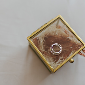 A Boho setting made of dried pakms, pampas grass and touches of gold, a color dear to the bride
