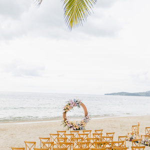Jackie & Noon’s Enchanting Phuket Beach Wedding, on a radiant day in paradise, Jackie and Noon said their “I do” against the stunning backdrop of Phuket Beach, where the turquoise waves gently kissed the shore. Their wedding was beautiful blend of pastel colors and rustic charm, meticulously curated to create an unforgettable atmosphere. As guests arrived, there were greeted by a picturesque scene featuring a wooden arch adorned with delicate floral arrangements in shades of blush, lavender, and soft mint. This enchanting arch formed the perfect frame for the couple’s vows, harmoniously blending with the natural beauty of the beach. Wooden crossback chairs added a rustic touch, enchancing the romantic setting while providing comfort for the guests throughout the ceremony. The reception was feast for the senses , set against the twilight sky, twinkling with fairy lights that created a magical ambiance. Long banquet tables where adorned with pastel colored linens, complementing the vibrant floral centerpieces that echoed the ceremony’s theme. Guests dined under a canopy of stars, enjoying a curated menu that celebrated local flavors, all while soaking in the warm sea breeze and joy shared among loves ones. As the evening unfolded, the couple delighted their guests with speical entertainment, featuring an exhilarating fire show that captivated everyone’s attention. The night culminated in a spectacular display of fireworks that lit up the sky, signaling the close of a perfect day. The combination of the colorful theme and rustic elements truly reflected Jackie and Noon’s personalities – fun, warm, and deeply in love. As the final fireworks painted the night sky, the newlyweds celebrated their journey ahead, knowing this beach wedding would forever remain a cherished memory, a beautiful begining to their life together.