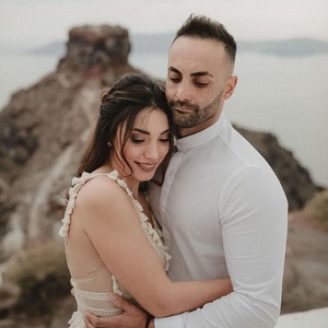 This minimalist and chic styled shoot at El Viento in Santorini has taken our heart! A wonderful small ceremony filled with colourful flowers and a magical wedding dress of 2021 collection in Germany Bridal dress shop.