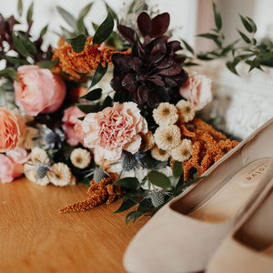 Their wedding was simple, elegant and personal! They included their little puppy in some of their wedding photos... how cute!! They had their first dance under the beautiful fairy lights! And even though it rained a bit they got some adorable photos under the clear umbrellas! It was the perfect fall wedding!
