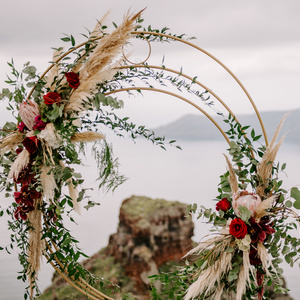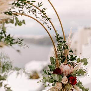 Wanting to combine their vibrant characters yet with a masculine discretion, we chose a more natural yet warming color palette to combine the natural colors of Santorini during spring and the romantic yet rebel spark to create the perfect day for Eva & Thanos.