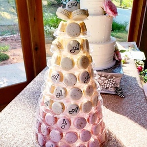 Macarons can be arranged in confetti, ombre, striped or twist design, and all of the colors and flavors are customizable.
