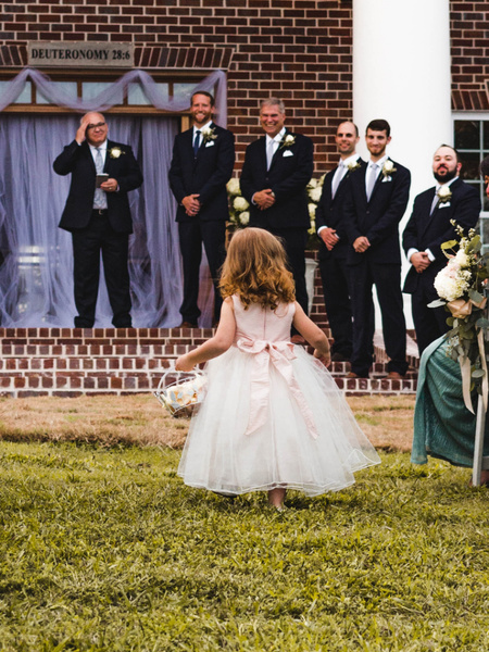 We Love Seeing Our Customers Across The World Wearing Pieces From Our Collection. To Be A Part Of A Couple's Special Day And Helping Them In Creating Memories Is Always A Huge Honor. That's Why We Are Super Happy When You Send Us Your Pictures Wearing Our Dresses - To Hear What You Like, And See How You Styled Them. It Really Brings Us Joy!today We Are Sharing Picture From Our Customer Cassidee's Country Wedding. And It's The Sweetest Thing Ever! Two Flower Girls Looked Elegant And Playful All At Once In Dresses From Our Collection. The Dress Features Sweetheart Neckline, Navy Blue Skirt Made Of Layers And Layers Of Tulle, And Gorgeous Ivory Lace. Satin Belt With A Bow Really Adds That Extra Little Sparkle And Completes The Whole Look. Perfect Ivory – Navy Color Combo, Agree? You Can Shop This Dress Here. here Is What Cassidee Thinks About The Dresses; I Bought My Flower Girl Dresses From Princessly, And Absolutely Loved Them! They Looked So Beautiful. The Pictures Were Exactly What I Ordered, And I Did Custom Sizes For Free. I Definitely Recommend Princessly. I Also Want To Thank Them Very Much For The Most Beautiful, And Elegant Dresses For My Girls! -cassidee V.