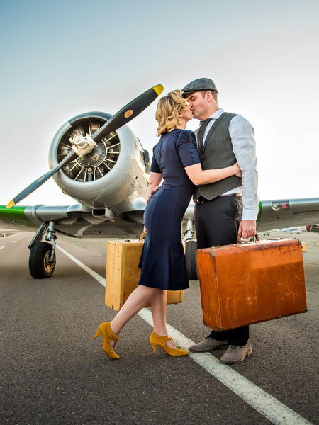 Emily And Rafael Are Originally From San Diego, But Currently Live In North Carolina. Since Rafael Is A Commercial Pilot, The Couple Flew To San Diego For A Special Engagement Session. The Shoot Was Held In Air Group One’s Hangar And Wwii Museum In El Cajon, Ca.emily And Rafael’s 1940’s Attire, Hair, And Makeup Made The Photos Feel Like A Step Back In Time. Also, The Suitcases (pictured Below) Were Gifted To Emily’s Grandmother On Her Own Wedding Day… 60 Years Ago! Check Out The Amazing Photos From This Fun And Glamorous Engagement Photo Shoot :)