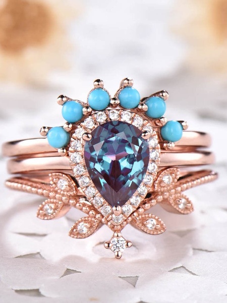Yes, We're Going Crazy Over Our Favorites Bohemian Engagement Ring Picks. Ideal For The Eclectic Bride Wanting A Little Something Different Than The Traditional Diamond Ring. this First Engagement Ring Is One Of Our Favorites. The Vintage Pear Shaped Alexandrite Engagement Ring Set. shown In Rose Gold, But It Also Comes In A Variety Of Metals.